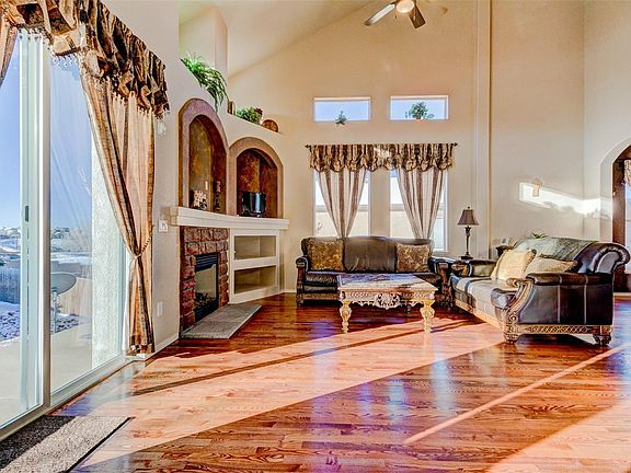 Stunning Pine Creek home on .19 acres featuring a beautifully designed open floor plan, soaring cathedral ceilings, rich hardwood floors, arched doorways, elegant kitchen with pantry and counter bar, formal and informal dining areas, tremendous great room with a warm fireplace, luxurious master retreat with sitting area and spa-like bath, professionally finished lower level, 3-car tandem garage, beautiful park-like yard with pond and waterfall, and panoramic Pikes Peak views - all in award-winning D-20 schools! Other home features include two furnaces, A/C, kitchen appliances, custom window coverings, and an excellent location near the golf course, parks, hospital and District 20 schools. Offering comfort, refinement, and breathtaking views, this home is not to be missed!