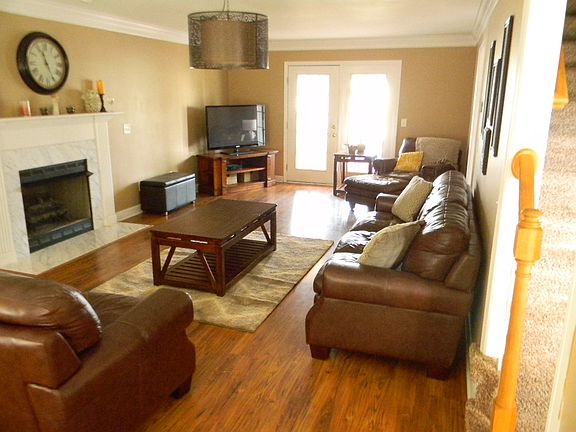 Tons to offer. Hardwoods, sunroom, eat-in kitchen with formal dining room. Finished 4th bedroom in the basement, would be a great "man cave". Oversized 2 car garage. Oversized master bedroom with his and her walk-in closets. Jetted tub and separate shower, dual vanity. Foyer area upstairs makes for a nice added space. Come enjoy the view from the sunroom, deck, or rocking chair front porch! Fenced in back yard. Storage building stays!