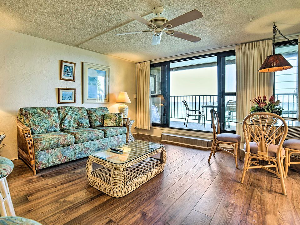 Wake up to the sound of gentle waves and panoramic oceanfront views at this charming 1-bedroom, 1-bathroom condo located right on the beach in Lahaina. Perfect for a romantic getaway or a relaxing solo escape, this retreat combines comfort, island charm, and unbeatable location. The open-concept living space features a fully equipped kitchen, a cozy seating area, and sliding glass doors that lead to your private lanai perfect for sipping coffee at sunrise or watching Maui's famous sunsets over the Pacific. The bedroom offers a plush king (or queen) bed with fresh linens, while the bathroom is stocked with towels and essentials for your stay. Step outside and you'll have direct beach access, where you can swim, snorkel, or simply relax on the sand. The condo community also offers a sparkling pool, BBQ grills, and tropical landscaping that sets the perfect Hawaiian atmosphere. Step-free living space access, 2 steps to access balcony