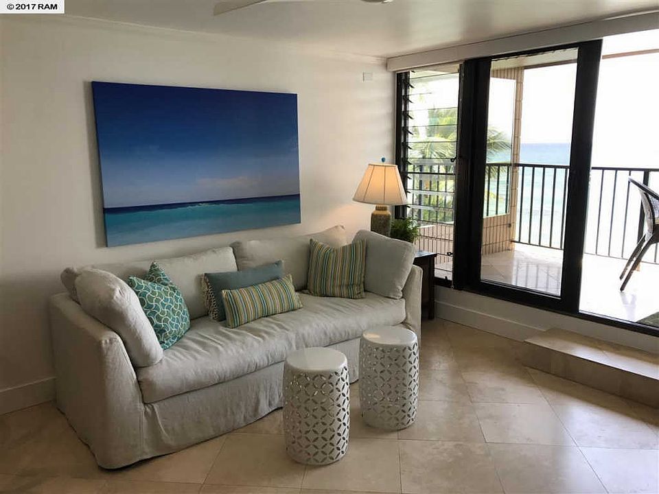 Direct Oceanfront, top (4th) floor with magnificent ocean views! One of the most beautiful units in its category, truly gorgeous, totally remodeled. Newly painted/refinished, travertine floors, custom cabinetry throughout (a lot of extra storage space), top of the line ceiling fans and appliances. All luxury furnishings and art included in the price. Unit has never been rented under a vacation rental program (or long term), has only served as the owners' Maui residence. Very "zen-like" ambiance, great relaxing oceanfront mini-retreat.
