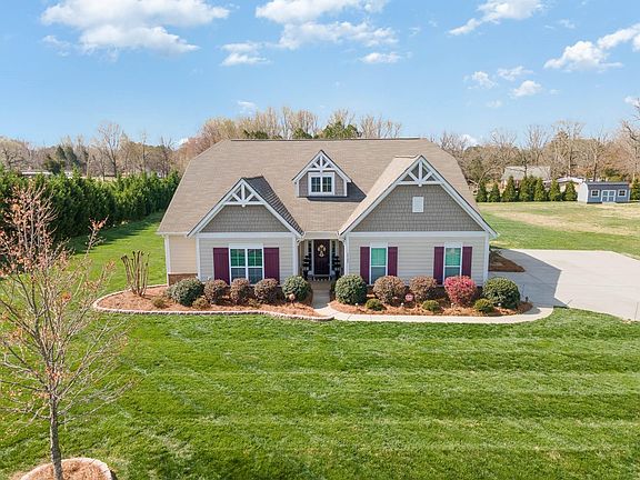 Why wait to build? This stunning 3 bed, 2.5 bath ranch style home was just constructed in 2016 & sits on 1 acre of land! Open floorplan with laminate wood floors throughout the main living area's. Oversided entryway coming into the home leads you into the stunning kitchen that features a massive 4'x10' island with granite countertops, SS appliances, tile backsplash, & gas stove. Stone fireplace in the living room w/ gas logs. Primary bed features tray ceilings, huge dbl vanity in bathroom, and a massive closet! Jack & Jill style bathroom for the 2 secondary bedrooms. Irrigation in front yard, 20x20 Dog kennel, 20x20 outbuilding, Concrete patio with an outdoor gas fireplace. Oversized laundry room is also used as an office. Enclosed patio with a perfect view of the back yard, is perfect for entertaining! 2 car attached garage w/ plenty of extra space for parking. Super conveniently located to I-85 & entertainment! Do not miss your opportunity on this one, schedule your appointment!