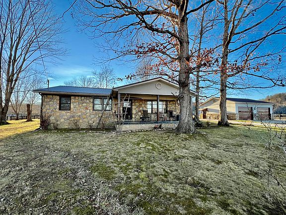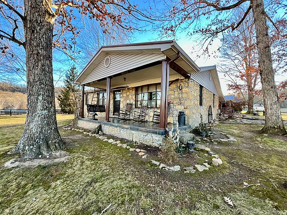 'Experience the allure of this delightful 3-bedroom, 1-bathroom stone house surrounded by a scenic landscape and is situated on 3.5 acres. Featuring a 28x32 detached garage, a 48x72 barn featuring 7 stalls, and a charming 12x20 two-room cabin, this property is a haven of tranquility. Inside, enjoy the inviting living room, separate dining room, and kitchen. The grounds feature a large pond, partial fencing, a chicken coop, and a covered picnic shelter. Unwind on the covered patio or the spacious front porch. The home is improved with a recent metal roof, is fully wired, central heat and air is currently installed, a wood-burning stove, and city water access to both the house and barn. Seize the opportunity to make this your dream rural residence!