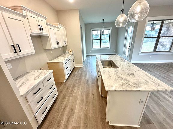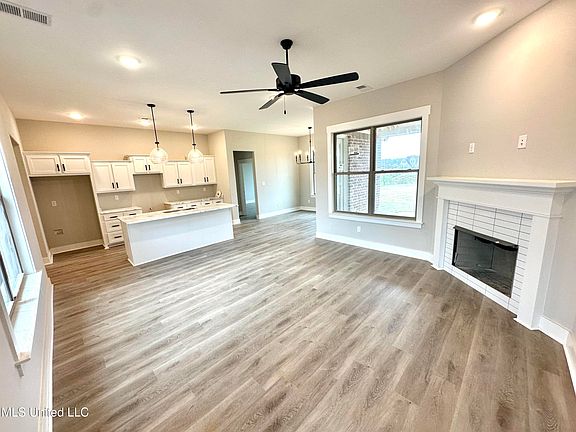 BUILDER OFFERING 3% TOWARDS BUYERS CONCESSIONS, ANY WAY THEY WANT TO USE IT! New construction move in ready home w 4br's, 2 full baths set on large lot with lake view! Nice open split floor plan home with lots of extras. Once you walk into the entry, your greeted with Luxury vinyl plank flooring throughout main areas, kitchen, and also in primary bedroom. Floor plan has open feel and kitchen has island, custom cabinets, tiled backsplashes, and granite counters. Granite counters are also included in both bathrooms too! In the primary bath, you will love the tiled surround and pebble floors in the shower and the walk-in closet with all wood shelving. Upstairs is a large game room (or 4th bedroom with walk-in closet) and very good-sized walk-in attic. This backyard is good size and you has a view of the lake that is so relaxing. There is also good space between you and your neighbors and a covered back patio.