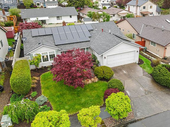 This home has so much to offer a buyer, including modern updates and energy-saving features like solar panels. The kitchen was updated in 2016 and provides a generous amount of countertops and cabinetry. Walk-in closets provide ample storage space, and the updated bathrooms with a walk-in shower and soaking tub add a touch of luxury. The living room and family room provide plenty of space for relaxation and entertainment, and the fireplace adds to the cozy atmosphere. The professionally landscaped front and backyard with a cascading water feature is a great outdoor space for entertaining and enjoying spring in Oregon. All in all, this home is a great option for someone looking for a move-in-ready property with plenty of amenities.