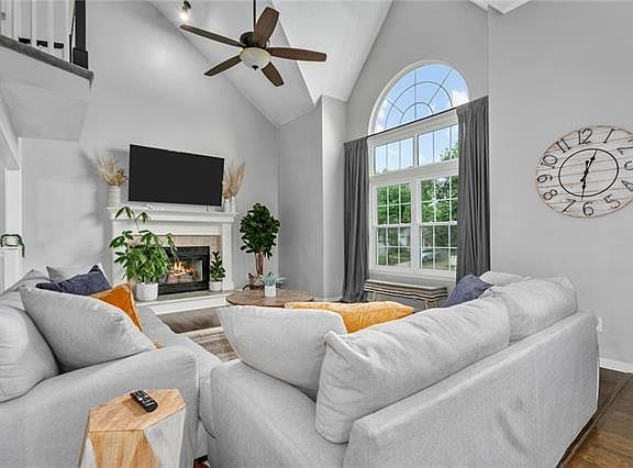 Wonderful spacious home in popular Stoney Creek with main floor large master & laundry room. A super cute balcony. Newer appliances with SS frig staying, wood laminate floors, & some light fixtures. Great backyard for entertainment with a 6' privacy fence, large patio, pergola for shade, and fire pit. HUGE finished basement with rec room, nonconforming 6th bedroom area, and a full bathroom. Alarm system with ring door bell. Sprinkler system. Stoney Creek has 3 swimming pools, clubhouse, 2 parks, and volleyball courts. GREAT LOCATION. The area has great access to major highways, entertainment, shopping, restaurants and the home is in the desirable Lee's Summit school district. Don't miss this great home!!!