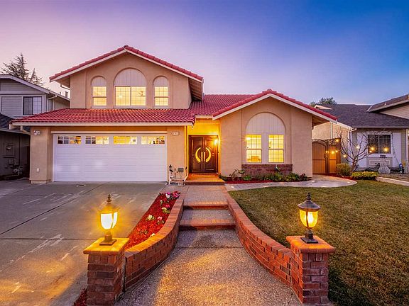 Stunning EAST facing 5 bed 3 bath executive home in desirable PARKMONT neighborhood. This home has a large open floor plan and soaring ceilings. Fully remodeled home with over 300K of upgrades including designer baths, new paint, 6" baseboards, and crown molding. This home has lots of windows, skylight. Includes fully paid SOLAR, EV charging station, new energy efficient dual zone HVAC & water heater and a new water softener. Two bedrooms with a full bath on main level w/hardwood floors. Upstairs has a huge master bedroom with views of the rolling hills. Two more large rooms, Jacuzzi tub, and a playroom/office which is additional square footage not included in the listed square feet. Separate formal living and dining rooms. Entertainer's backyard with over 100k in upgrades. Fully manicured grass, mature fruit trees. Walk to award winning public and private schools. Close to BART, 880, 84/Dumbarton Bridge, shopping, Whole Foods and many more. NO HOA DUES.