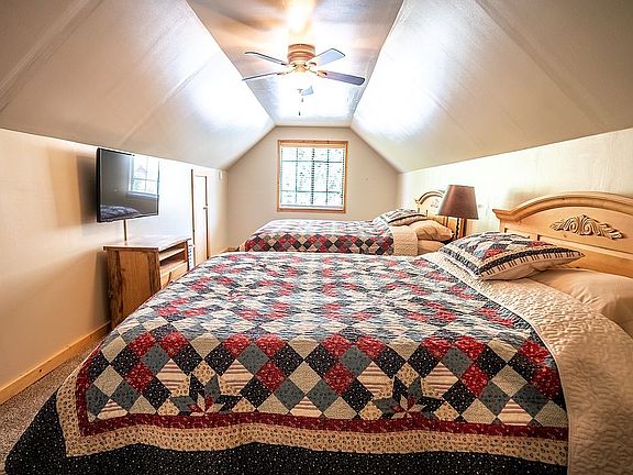 The basement is where you’ll find the game room with a bar and mini-fridge. Play a game of Pool or host a ping pong tournament for epic family memories. The kids' room (4 twins) and a 3/4 bath has miniature log cabin bed frames for extra creative play if they want to take a break from the included arcade center featuring hundreds of games from many different gaming consoles; including Atari, Sega, Nintendo, Super Nintendo, Nintendo 64 and more or watching the large flat screen smart TV for easy viewing.