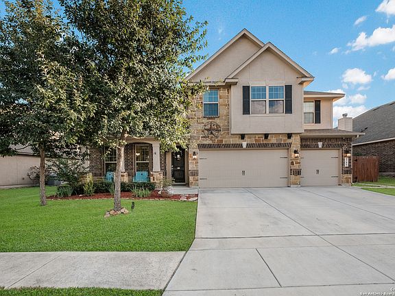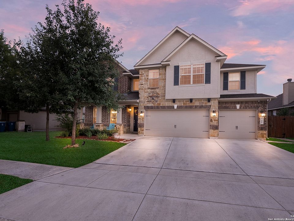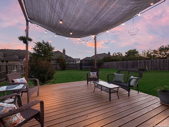 Fall in Love with this Stunning Johnson Ranch Home! Nestled on a quiet cul-de-sac, this 4-bedroom, 3-car garage home sits on an oversized .25-acre lot in the highly sought-after Johnson Ranch community. Designed for comfort and versatility, the spacious floor plan includes a dedicated office and a large gameroom, perfect for working from home or entertaining guests. This home is as energy-efficient as it is beautiful, featuring solar panels and eco-friendly upgrades that help reduce utility costs. The primary suite on the main floor offers a true retreat with a custom, expansive shower with deco tile and a HUGE walk-in closet. The heart of the home-a chef's dream kitchen-boasts built-in appliances, gas cooking, and granite countertops, opening up to soaring ceilings that create a light, airy ambiance throughout. Step outside to your private outdoor oasis complete with a covered patio, deck, and pergola, offering the perfect setting for relaxation or entertaining. With plenty of space, there's even room for a future pool! Located in highly acclaimed Comal ISD, Johnson Ranch Elementary is just a short walk away. The neighborhood features scenic walking trails, a community pool, basketball courts, and frequent community activities. Enjoy convenient access to San Antonio, New Braunfels, Austin, and Canyon Lake. Schedule your showing today and discover the lifestyle waiting for you in Johnson Ranch!