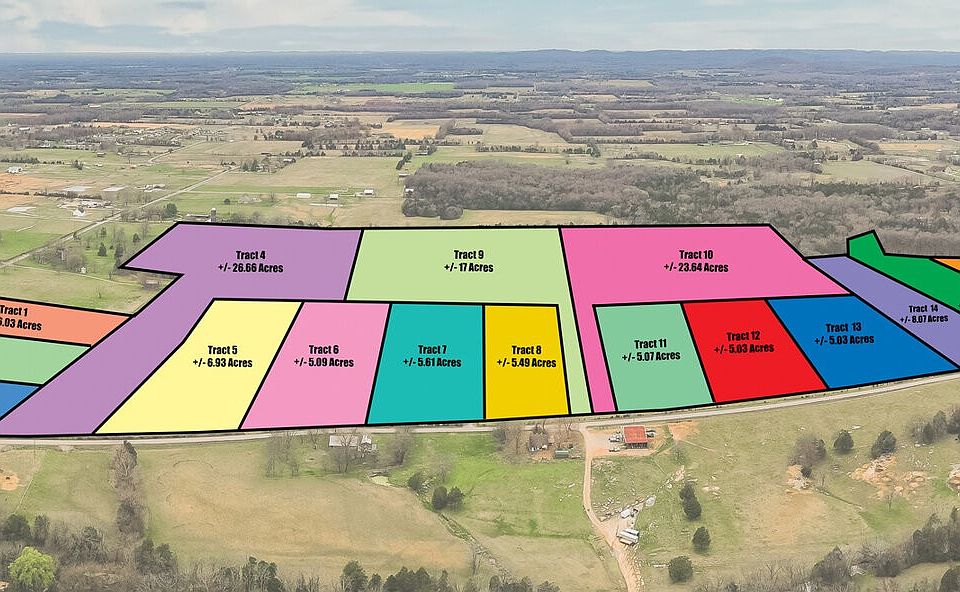 Farm to sell in 18 tracts at Public Auction Saturday April 8th. Auction starts at 10:00 A.M. Real Estate sells at Noon. 164 acre farm located in Southern Rutherford County. Includes 2 house tracts and 16 acreage tracts which all have a soil site evaluated by TDEC (one 3BR, one 4BR, and the rest are 5BR sites). County water and electric are at the road. Tracts range in size from 5.01 to 26 acres. The tracts are mainly fields but there are a few wooded tracts. Some of the prettiest land in the area! Don’t miss this opportunity to buy one or more to build your home on! Click the Auction Website Link to view all information and details including photos, maps and soil information. Buyer to verify all pertinent information.