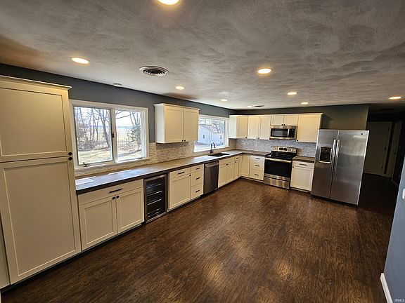 : Check out this recently remodeled home located just minutes from Vincennes! This home has a spacious living room with large picture window, an eat in kitchen with plenty of counter space on the concrete countertops, Stainless Steel Appliances including the wine chiller, and main floor laundry area. The home now has 2 full baths, an open full finished basement with a Bdry system and transferable warranty. The backyard is fenced in and has an open patio with knee wall enclosure. This property has a 2 car attached garage, but also a 30x40 pole barn with 2 overhead doors and separate workshop area. This home has a lot to offer for anyone wanting a home just outside the city limits!