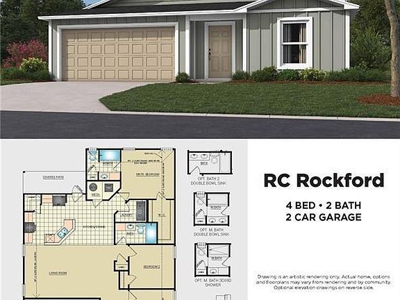 Introducing the Rockford, a spacious and inviting home designed for modern living. This cozy plan features 4 bedrooms, 2 bathrooms, and a practical 2-car garage, providing ample space for comfort and convenience. Enjoy the charm of a covered front porch and a large covered back patio, perfect for relaxing outdoors in any weather. Inside, the Rockford boasts a well-appointed master suite, and a large kitchen and dining area equipped with energy-efficient appliances and plenty of storage space. Discover the Rockford today and envision how its thoughtful design can enhance your lifestyle. Estimated completion at end of April/early May.