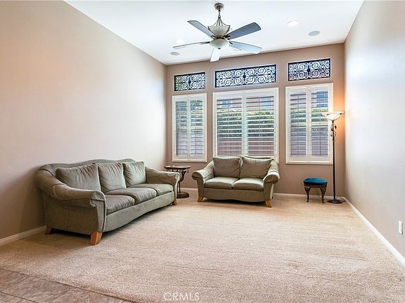 Welcome to 37867 Amateur Way, a meticulously maintained 4-bedroom, 3-bathroom single-story home located in the gorgeous gated community of Oak Valley Parkway Tournament Hills. This elegant residence offers fantastic curb appeal, featuring a beautifully landscaped yard that invites you in to an open floor plan with vaulted ceilings, built-in surround sound speakers, formal dining and living room with an abundance of natural light flowing into all the main living spaces. A cozy fireplace, open to both the family room and formal areas, adds warmth and charm. The kitchen flows seamlessly into the spacious family room creating a welcoming atmosphere for entertaining or relaxing. The spacious primary bedroom offers a sliding door leading to the beautifully landscaped backyard, providing easy access to outdoor living and natural light. The luxurious en suite features dual sinks, a separate shower and tub, a large walk-in closet and private toilet room, offering both comfort and privacy. The backyard features a covered patio that runs the length of the home and is equipped with ceiling fans, perfect for enjoying the outdoors in comfort. The home also includes a private laundry room with a convenient sink, window shutters/blinds and ceiling fans throughout, a secondary bedroom with private bathroom and a rare 3-car garage for ample storage. As part of the Oak Valley Parkway Tournament Hills community, residents enjoy access to a serene community lake, parks, playgrounds, basketball courts, and a baseball field. Conveniently located near the Oak Valley Golf Course, easy freeway access, and shopping. This home combines stunning curb appeal, comfort, and community living, making it the perfect place to call home!