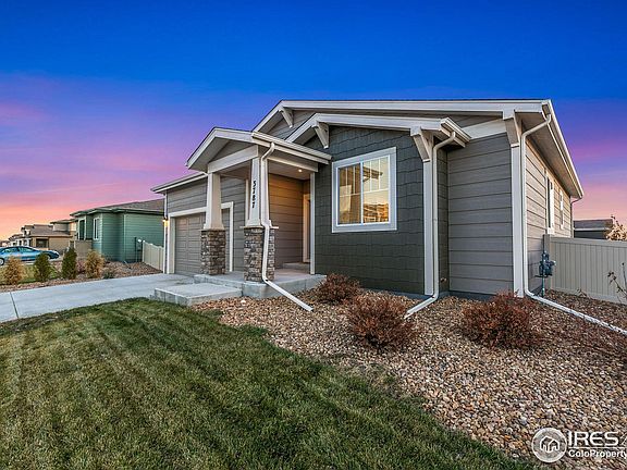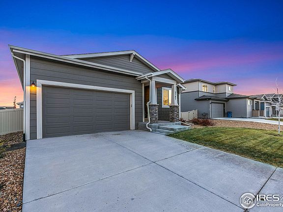NEW PRICE & OPEN HOUSE SAT 2/1 11-1. Check out this 2-year-old ranch home with Low HOA & Low water bills! As soon as you walk in, you're greeted by a spacious entryway, 9 FT ceilings & modern vinyl plank flooring that feels just right. The kitchen is a real showstopper with granite island, dark espresso cabinets, & shiny stainless-steel appliances, all flowing perfectly into the cozy living room. The primary suite is a peaceful getaway, located at the back of the house. It features comfy carpeting, warm Southern exposure & a lovely ensuite with a walk-in shower, double sinks, & a fantastic walk-in closet with ample space. Bonus, all bedrooms have a walk-in closet!! The backyard offers peek-a-boo mountain views that you'll just adore! The neighborhood is nice, complete with a sparkling outdoor pool, walking paths, & down the street from the local grocery store. And the cherry on top? It's only a quick 10-minute drive to Fort Collins! For your peace of mind: newer class 4 roof w/ transferable warranty, active radon system & a 1-year 1st American home warranty!