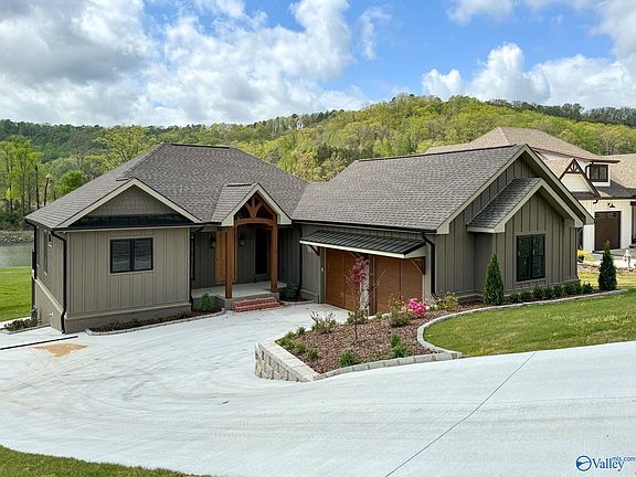 Charming New Construction Craftsmen style lake front home in Guntersville city limits! This home features traditional hardwood flooring, tongue & groove ceilings in various areas, upscale appliances, Granite countertops throughout, oversized mudroom/laundry room off the garage entry, walk out basement with wet bar area, covered screened in patio with fireplace, timber craft features and all the wonderful amenities that Southwater has to offer. This home is in close proximity to all things Guntersville has to offer. Home has a completed open designed boat house!