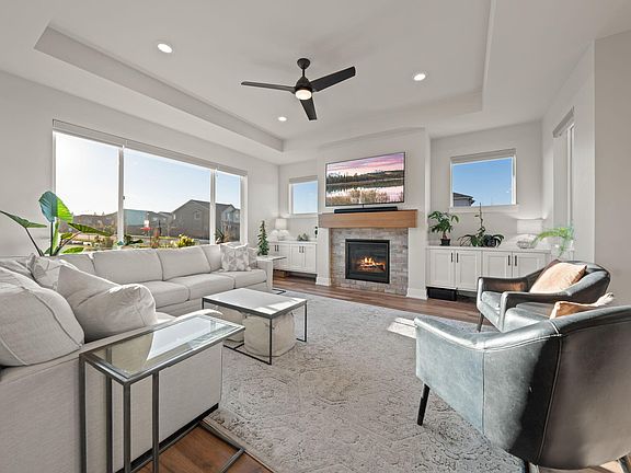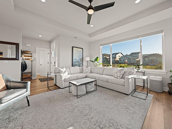 Better than new! One year old Everett floorplan by Pahlisch Homes in coveted Petrosa facing greenspace. Primary suite on the main level with spa like bath including tile shower, soaking tub and walk-in. Upstairs offers 2 bedrooms, a full bath and loft area that could be used as an office, second living space or both. Enjoy the private yard with extended patio, sod and water feature. Too many upgrades to list! Community amenities include clubhouse, event space, pool, hot tub and gym.