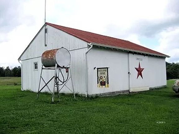 • Exterior Features: Out Building, Fenced- Part, Gutters & Downspouts, Trees, Barn, Patio, Pond, Storage Shed, Garden Area, Minerals-per Owner