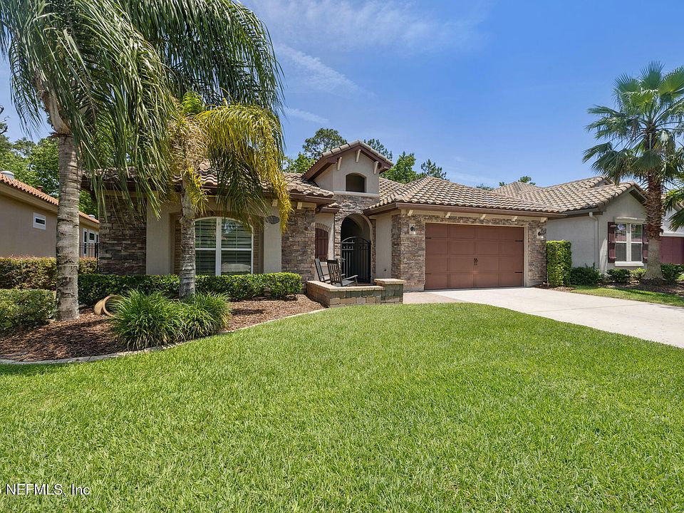 Experience the comfort & ease of everyday living in this single story Palermo home with 3 bedrooms, PLUS Flex Rm/Office/Bedroom 4, and 3 Full Baths. This fascinating plan offers Grand Kitchen with 4 Burner Gas Cooktop & Stainless Steel Hood Vent, Wall & Microwave Ovens, Granite Island with integrated dining at the counter. Enjoy gatherings in the generous great room with updated Hickory wide plank wood floors. Cozy brick fireplace with gas logs is flanked by custom shiplap wall accented by comfy seating nooks. Adjacent to the family room is a private outdoor living space to expand the functionality of the dwelling. Outdoor activities are all the more enjoyable by the stone exterior fireside with ambient bistro lights for alfresco dining and relaxing. Oversized owners' suite with sliding doors to the courtyard, his/hers vanities, step in shower and garden tub, plus huge walk in closet. Other spaces include Flex Room/Office with Sliding Doors to the Courtyard, huge laundry with shiplap walls, upper storage cabinetry & deep laundry sink, plus 2 car garage. Not to be missed are the plantation shutters, upgraded lighting, shiplap backsplash, trayed ceilings, and fenced lawn and the low maintenance ease of this home. Palermo features a community pool, fitness area and covered pavilion with outdoor grilles for oversized gatherings. This Premier location is conveniently located with area beaches 15 minutes east. The new St. Johns Town Center offers convenience to shopping & restaurants. Mayo Clinic, JTB & I-295, places you 20 minutes to the Jacksonville International Airport and close to downtown Jacksonville, where you will enjoy excellent dining options, museums, The Performing Arts Center, TIAA Bank Field events, & More...
