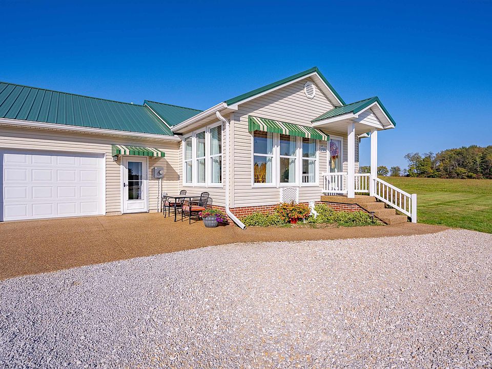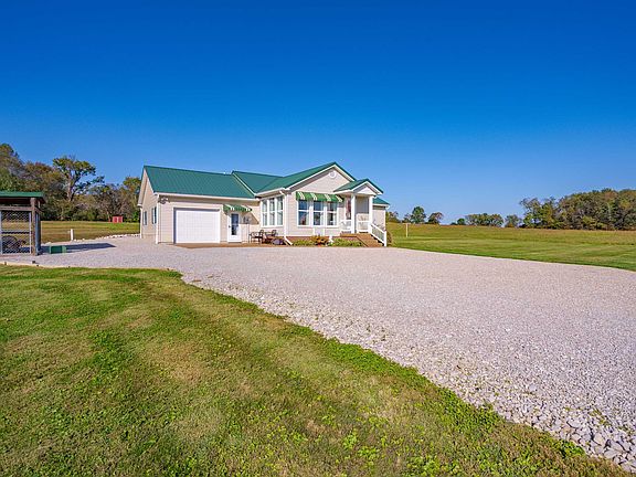 Perfect Country Setting! Move right into this immaculate 2 bed, 2 bath ranch home set on 13 scenic acres. A long gravel drive leads you to this "clean as a whistle" home. Inside, you’ll find stunning oak hardwood floors throughout the open living room and kitchen. The living room boasts a cozy wood-burning fireplace, beautiful white paneled ceilings, and abundant natural light. The kitchen features rich hickory cabinets, ample counter space, and comes fully equipped with all appliances. Just off the kitchen, the sunroom offers a versatile space ideal for a dining area or second sitting room. The spacious primary bedroom includes an attached full bath, while a second, generously sized bedroom and updated full guest bath provide comfort for family or visitors. Additional features include a convenient laundry room and an attached garage with an epoxy-coated floor. Step outside to find three additional buildings: a 16x34 barn with two stalls and central storage, an 8x8 shed, and a 23x26 detached garage with bay. The largest barn (15x45) comes with a brand-new roof and includes a storage/tack room that can easily be heated and cooled. Recent updates include new lighting inside and out, fresh carpet, Pergo floors in both bathrooms, a new garage door, updated metal roofing and gutters on both the house and detached garage, and fresh paint throughout. There’s so much more to love about this property, but you truly need to see it to appreciate all it has to offer!