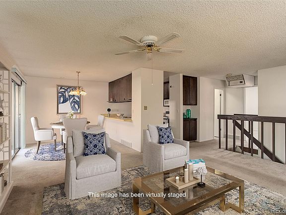 The Timbers! Fresh neutral paint on the main level. Rare Ranch available in Southeast Aurora. Open concept main floor is ideal for entertaining and accented by a cozy wood-burning fireplace situated in the Living Room. A sliding glass door off the dining room opens out to the private fenced patio for enjoying your morning coffee on warmer days or easy Grilling outside. Large Dining area off the kitchen area. Kitchen appointed with all appliances and ample storage. Main floor is completed by a full bathroom, larger main bedroom with plenty of closet space as well as a secondary bedroom. There is also a finished basement. Includes a third non-conforming bedroom, large recreational room, wet bar area, unfinished storage room of adequate size, three-quarter bath and a large laundry room with a full size Washer and Dryer included. As an added bonus, there is a wheelchair accessible ramp from front door to front street parking that also has a handicapped parking area. In the back there is a reserved carport space and additional open parking spaces. Immediate occupancy makes this home move-in ready. The Timbers community is perfectly situated in the prestigious Cherry Creek School District in a quiet community with two pools and tennis courts. Enjoy quick access to RTD, Shopping, Dining, Meadow Hills Golf Course, I-225 and Cherry Creek State Park and Reservoir.