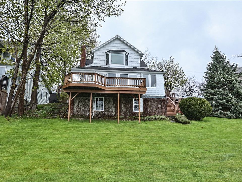 All I can say is "WOW". This remarkable waterfront home comes completely furnished. Boat and motor plus water accessories also included. Spectacular views of lake from walls of glass in living rooms and master bedroom. Full workshop under garage and parking for 8 cars!! Be in for the summer season. Owners of 35 years have lovingly cared for this home and it shows!! Expansive open porch overlooking lake and 3 decks for entertaining.