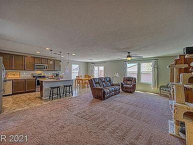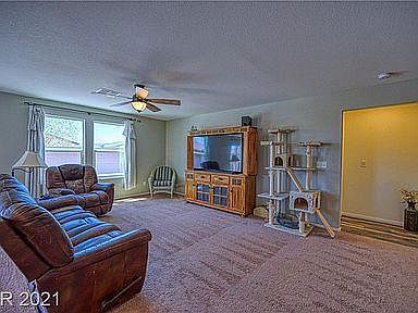 Located in Burson Ranch on the South end of town this 3 bedroom move-in ready home offers quick access to Highway 160 into Las Vegas. This energy efficient home offers RV parking, granite counter-tops, upgraded cabinets, window coverings, and beautiful wood laminate flooring in the master suite! Backyard includes fruit and shade trees, covered patio, fire pit, raised garden bed and area for children's playground set Owner pays for water and sewer. Pets may be allowed on an individual basis with additional deposit. No smoking inside house.