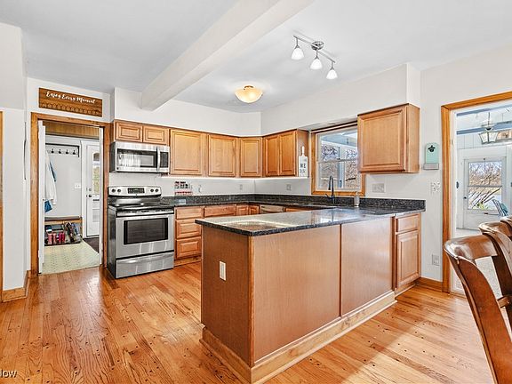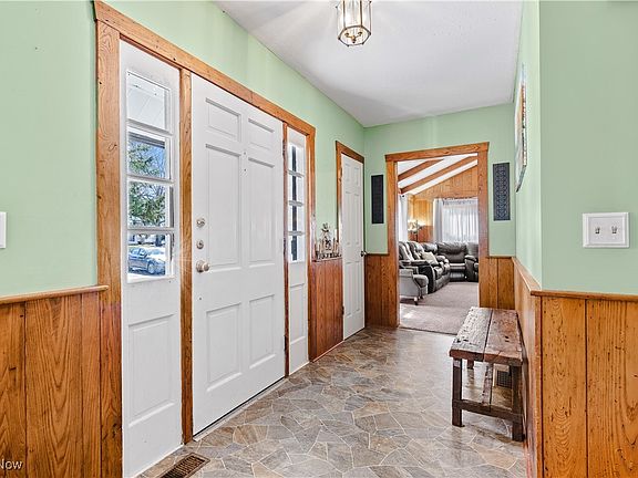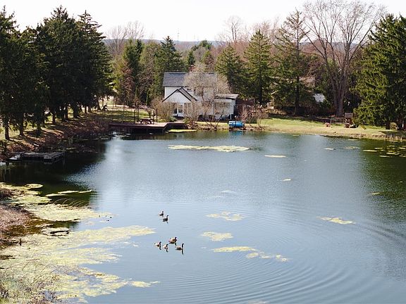 Charming Century Home on 5 Acres with a Stocked Pond & Two-Story Barn! Experience the perfect blend of country charm and modern convenience with this beautifully updated century colonial on five scenic acres. This unique property offers a two-acre stocked pond, a spacious 50x30 barn, and the opportunity for livestock; stalls, chicken coop, and electric fencing already in place! Ideal for those seeking a serene rural lifestyle while staying close to city amenities... with public wate to the home and barn! Step inside the welcoming foyer and discover a large eat-in kitchen, featuring granite countertops, stainless steel appliances, a walk-in pantry, and stunning oak peg floors. A sliding door leads to a 15x20 enclosed patio. Adjacent to the kitchen, the first-floor laundry room provides easy access to the back stairs leading to the cellar for mechanicals. To the left of the foyer, a spacious great room boasts a cathedral-beamed ceiling, warm chestnut walls, new carpet, and a cozy wood-burning insert. French doors open into a versatile family/media room or den, with cherry plank wood floors, oak walls, and French sliders leading to a large deck. The first-floor master suite is an inviting retreat with a step-up seating area, a massive walk-in closet with built-in organization, and an en-suite full bath. Upstairs, you’ll find three generously sized bedrooms and a fully remodeled bath. Enjoy breathtaking outdoor views from the walkway leading to a large deck overlooking the stocked pond, home to bass, yellow perch, bluegill, and grass carp that naturally maintain the water. The 2-story barn includes two heated workshops, water, and a spacious loft area. Don’t miss this incredible opportunity to own a stunning country estate with endless possibilities! Please call today for your private showing!