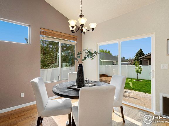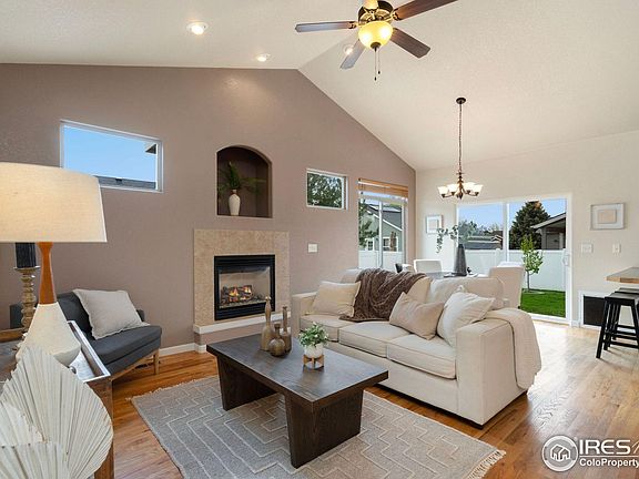 Bright & Open single Story Ranch home in the Knolls in Wellington. This one owner home has been very well maintained. Includes 4 bedrooms & 3 bathrooms with a finished basement. Open floor plan w/ vaulted ceilings, oak wood floors, & gas fireplace in living area. Generous main floor primary bedroom w/ ensuite bathroom includes 2 sink vanity. Vast 3 car garage with access to the backyard. Fenced yard w/ sprinkler system using non-potable water provided by the HOA and massive stamped & colored concrete patio. Finished basement includes an immense rec room that includes a pool table, 2 bedrooms, full bathroom and lots of storage. Convenient location, close to park, trails, grocery, school, and shopping! The property has been pre-inspected and comes with a one-year home warranty. Schedule your private tour today!