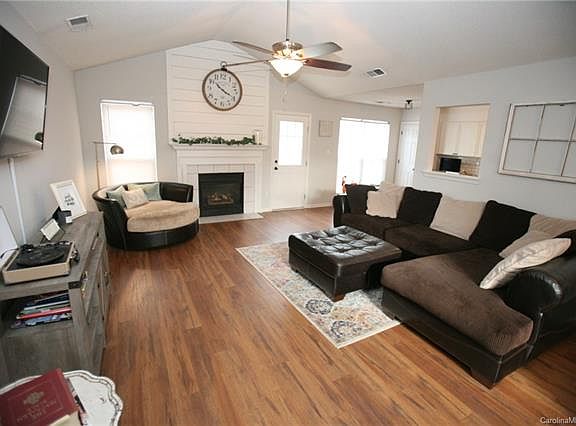What a wonderful one story home in South Concord. This split bedroom home has had so many updates and has an open floor plan with cathedral ceiling and fireplace in the greatroom. Eat in kitchen has white cabinetry, butcher block countertops, new stainless appliances, and new flooring throughout with no carpeting. Large master bedroom with trey ceiling, nice master bath with walk-in closet. Good sized secondary bedrooms and a lovely open formal dining room area. The yard is fenced and features a deck and firepit. Nice two car garage and double driveway. Don't miss this great house!