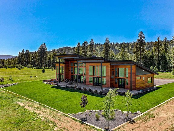 This magnificent mountain modern home sits far off the road on 40 acres with beautiful views in all directions. Walking through the front door will take your breath away with the 22 foot floor to ceiling windows. All five bedrooms in the main house have tall ceilings and their own private bathrooms. This home has a fantastic mix of steel, stone, wood and soft white walls making it feel crisp and clean yet so warm and cozy. Also features a two bedroom apartment above the garage with a private kitchen, washer/dryer, office and living room. This property boarders Whitetail Club property and is home to their private nordic trails. If you're looking for a little more peace, quiet and privacy than a lakefront home offers, this is simply a must see! No HOA or CCR's and plenty of room for trailer parking.