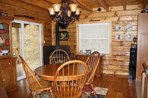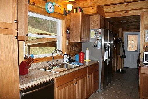 has open floor plan, unique kitchen island with built in range and stainless appliances. Built in 2008 with 1,800 square feet of living space this three bedroom, two bath home has gas forced air furnace and central air, wood and ceramic flooring, two car garage with bonus area above and nestled on 2.76 acres. $249,000