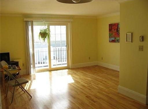 Pretty 2nd floor, 2 bedroom condo in lovely Meeting House Hill neighborhood with hardwood and tile floors, laundry in unit, oversized single garage, white bead board and crown molding trim and economical gas heat.