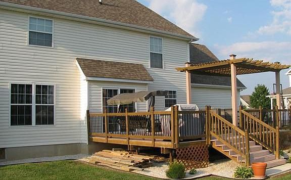 This lovely 4 bedroom, 2.5 bath home is a gem! Located in The Orchards- a popular single family home community with holiday parades & neighborhood picnics. Qualities include exterior stone detail & welcoming front porch. Guests are greeted by a two-story cathedral ceiling & warm wood floors in foyer. Spacious main floor features dining room, kitchen with pantry, eat-in breakfast nook, 1/2 bath & pedestal sink. A grand living room spans width of home with picturesque views of front porch & beautifully landscaped backyard. Family gatherings will be enjoyed from a maintenance free composite deck, giving you more time to sit below the pergola or adjacent pavered patio area. The second floor features large bedrooms, walk-in closets, & whirlpool tub in the master suite. Carpeting throughout the home is plush, and appear like new; paint colors are pleasing. Poured concrete full-basement offers vast storage space. Home has been exceptionally well cared for. Dont miss out on this opportunity- priced right!