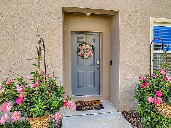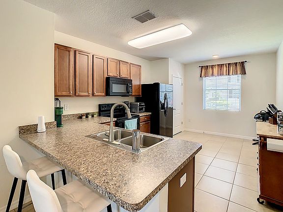 Captivating water/fountain view 3-bedroom 2.5-bath end unit, 1-car garage townhome on premium lot in upscale Champions Gate/Reunion area. Desirable, attractively landscaped, quiet, centrally located, gated community. $8600 in upgrades including smart home features. Relax in a water view screened-in lanai to the soothing sounds of an illuminated fountain centered in an expansive courtyard overlooking the palm tree-lined resort style pool. Spacious, open floor plan with tile flooring throughout first floor, laundry and baths. Gorgeous courtyard/water view from large, sun-filled living/dining room and eat-in kitchen with breakfast bar through 3-panel glass sliding doors opening to the lanai. Unwind at the end of the day to the warm glow of color changeable smart lighting in the owner's retreat, nestled in a private corner of the second floor. Features include an en-suite bathroom, double-sink vanity, walk-in shower, linen closet and walk-in closet. An oversized window fills the room with natural light and offers a water view overlooking the fountain, courtyard, pool and free-roaming wildlife. Convenient, safe, energy efficient Smart Home features throughout including a monitored smart security system. 10 miles to Disney-Surrounded by shopping centers, restaurants, movie theaters, golf courses and lakes. Easy access to major highways and airport.