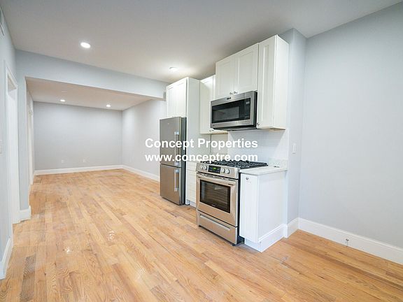 - Move-in date is flexible (late December or January) - 2 bed/1 bath (second floor, left-side, rear unit) - Brand New Everything 2022 (all high-end finishes) - Open kitchen/living - New white-granite counters - New cabinets - New stainless-steel appliances - New hardwood floors - Modern/tiled bathroom - Central heat and AC - LL pays for hot water - In-unit laundry - Private rear deck Move-in cost: Last month's rent & 1 month broker fee