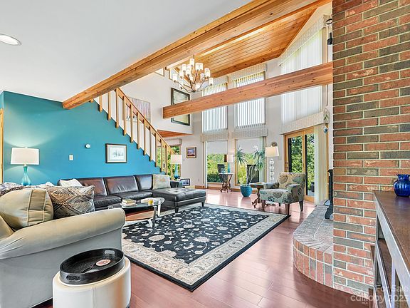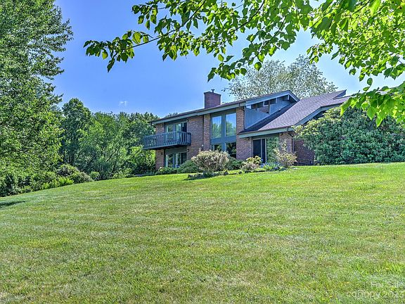 1990 contemporary inspires conversations and creativity! This inviting home features plenty of natural light, mountain views, vaulted ceilings, custom kitchen cabinetry, a new main level HVAC, updated bathrooms and kitchen, and cozy nooks for reading or sharing coffee with a friend. The outside space offers much as well with a spacious two-acre lot, a large patio, private backyard, a front deck, primary balcony and mature landscaping. Plus, there's a 197 sq. ft. outbuilding equipped with a mini-split - perfect for an artist's studio, writer's getaway, crafter's space, office, etc. Other thoughtful features that add to the home's comfort and appeal include a tankless water heater, solar panels, and an encapsulated crawlspace. (Per sellers, the solar panels offset most of the electricity charges from Duke Energy.) No city taxes and only a 22 min. drive to downtown Asheville. Come have a look for yourself, listen to the birds sing and take in the views!
