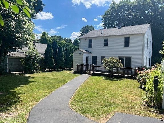 GREAT LOCATION for this Garrison Colonial home located on Mansfield/Foxboro line with easy access to major highways, shopping and the Mansfield train station. FIRST floor features front to back living room with fireplace and atrium doors leading to large deck, formal Dining room, kitchen and 1/2 bath. SECOND floor has 3 spacious bedrooms and full bathroom. Hardwood floors under the wall to wall carpeting. FHA/gas heat with central air conditioning. Oversized garden shed and oversized double width driveway