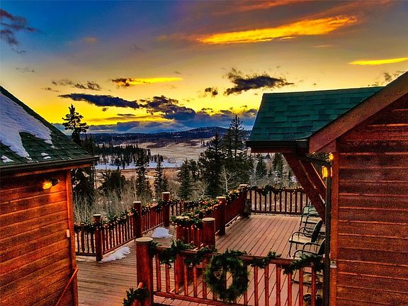 Amazing 3 BD/2 BA home ~40 min from Breck on over 2 acres (more acreage available) w/jaw dropping continental divide views. 2600+ sqft not including the storage (~260sqft) above garage. Deck connects Garage & Home. Great room is vaulted T&G ceilings leading to 2/BD 1/BA. Lower level has a Bedroom & 2nd non conforming bedroom, great space for entertaining. The second building has a 2 car+ garage. Open space for parties. Also a bonus space above for storage or the kids will likely disappear into.