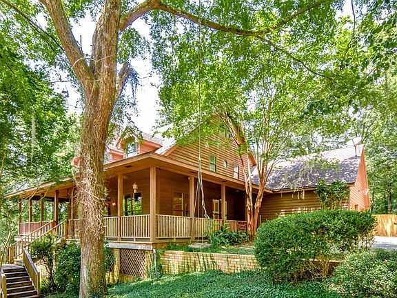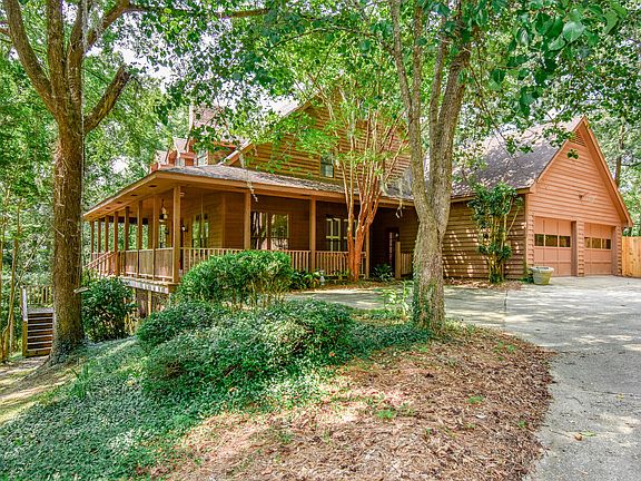 A unique, custom-built cedar home situated on +/-2.6 acres in beautiful Wetumpka. Plantation-style wraparound covered porch with a huge back deck, a lighted boardwalk and steps leading to a 1,300 square foot guest house. First floor of the main house has 10 ft ceilings, kitchen with restaurant-grade gas range, huge breakfast area, formal dining room with trey ceiling. First floor master suite features a bath with split double vanities, spa tub and his and her closets. Second floor has 9 foot ceilings and 4 BRs with 2 jack- and- jill baths. Third floor has 2 beds and a full bath. Don't forget the partially finished basement complete with workshop and office.