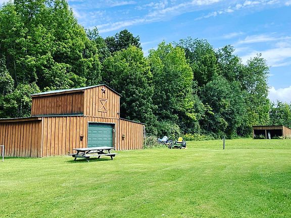 Exceptional log cabin that is surrounded by 68 acres of land, is perfect for hunters and outdoor enthusiasts. This home consists of 3 bedrooms, 2 full bathrooms, that includes a master suite and full bathroom. This beautiful log cabin has an open concept interior with an eat-in kitchen that features oak cabinets, dining room, and a living room with a stunning stone fireplace. A full basement is partially finished and has an additional bedroom. High ceilings and concrete floors allow the rest of the basement to be finished. An additional feature is central air! If you're looking for outdoor storage, there is a large barn that includes electricity, for all of your equipment or atv's. For your convenience there is an additional open two stall. If you love privacy, this is the perfect home for you.