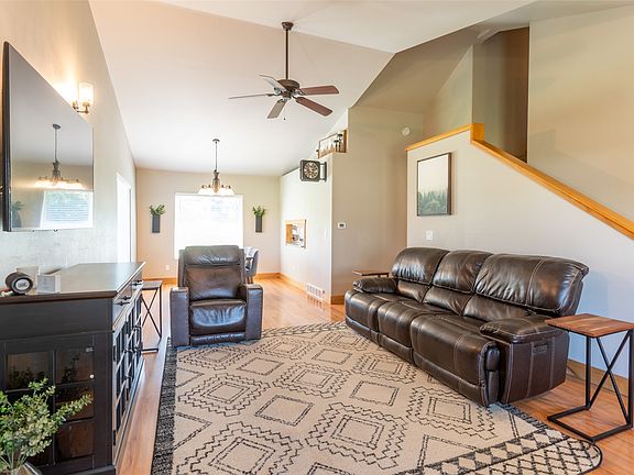 Sitting peacefully at the edge of Happy Valley, this charming home offers a serene retreat on a nicely landscaped half-acre lot complete with a playhouse. The 3 bedroom 2.5 bathroom home has abundant early morning light with numerous east-facing windows. At the heart of the home is the spacious, modern kitchen featuring granite countertops, a tasteful tile backsplash, and loads of cabinet and counter space. There’s a TV room off of the kitchen as well as a formal living room and dining area around the corner. Head upstairs to the large primary bedroom ensuite which conveniently features a stacked washer and dryer, two more bedrooms with built-in window seats, and a second full bathroom. Out back, the sun-soaked east-facing deck is the perfect place to enjoy your morning coffee and host summer barbecues. Don't miss the opportunity to make this charming 3-bedroom property your own. For more information, contact Matt Zignego @ 406.212.2792 or Brenda Twete at @406.253.2794 or your real estate professional.