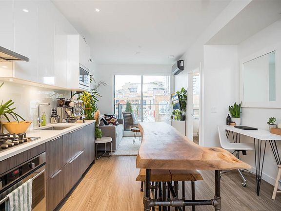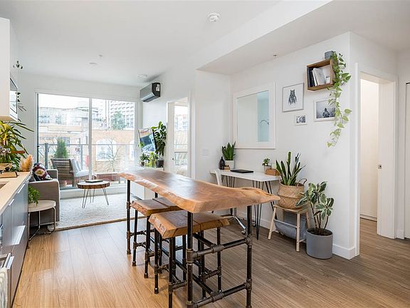Come see the brightest home in Vancouver's hottest neighbourhood! Situated between the future Main Street Skytrain Station and Vancouver's famous Dude Chilling park this home leaves you steps to the restaurants and shops of Mt Pleasant. Choosing between dining on Main St's newest patios or returning to your shared roof top deck with sprawling city views will be your greatest concern in this 2 year old home with warranty! Natural light fills the home through floor to ceiling window's in this air conditioned, South facing 1 bed & Den where soaring 9ft ceilings are the perfect compliment to the open concept kitchen, complete with gourmet gas range! Not to mention the oversized Patio! Pet & rental friendly, this nearly new build has it all including: 1 Parking, Storage, Private Bike locker!