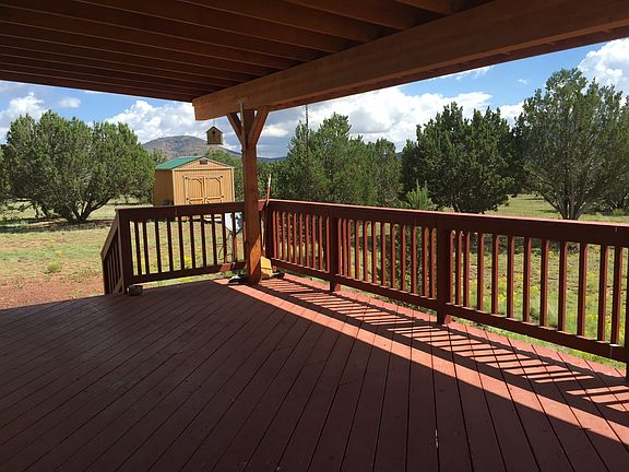 A wonderful home that's been very well cared for. This 3 bedroom, 2 bath home sits on just below 10 acres of gently sloped, heavily treed land. It features spectacular views in all directions. It is even difficult to see neighbors from this very private property. The large living room has a vaulted ceiling and a pellet burning fireplace takes the chill off that cool mountain air. The very spacious kitchen has lots of storage options, a pantry and a dining area along one side. A den/family room is just around the corner with a huge master suite and 2 guest bedrooms. A large covered deck and rear patio features those great views. There are 4 sheds to store all of the toys & tools you will need for this mini ranch. It is located just a few miles north of Williams down a quiet road.