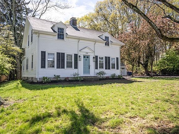 The antique Joshua Ingraham house was renovated with care to maintain its original charm while providing modern amenities. Enter this home through the heated breezeway which is lined with a wooden ceiling and brick laid floor for a rustic practical space. The extended living room features a working fireplace and original hardwood flooring. Built-in bookcases and other details are found throughout the home including the formal dining room. The bright kitchen boasts granite leathered countertops, decorated tiled backsplash and a large farmhouse sink. Hardwood flooring extends throughout the bedrooms, one being on the main floor. A second bathroom is located upstairs while a half bath for guests is located on the first floor. A partially finished basement allows for additional living space. Outside you can find a private patio, two car garage, fire pit and spacious yard. This lot abuts winding nature trails and beautiful Burrs Pond in the 27 acres of the Edna Martin Wildlife Refuge.