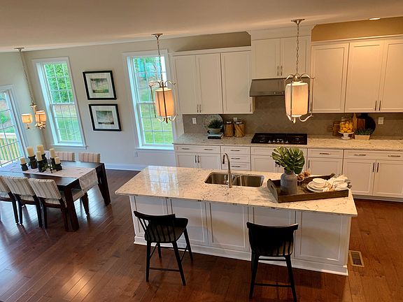 An inviting foyer with a tray ceiling is open to the flex space and leads to the great room. A well-designed kitchen boasts a walk-in pantry and a large island. First floor guest suite with private bathroom. The master bedroom features a coffered ceiling, walk-in closet and a luxurious bathroom. The second floor also includes two bedrooms with a Jack-and-Jill bath, an additional bedroom with convenient access to the hall bath, a loft and laundry room. Nine-foot ceilings throughout the first and second floors. Disclaimer: Photos are images only and should not be relied upon to confirm applicable features.