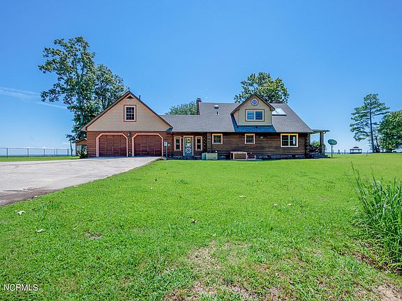 Wake up to views of the Albemarle Sound! This unique log home offers 1st floor Master en-suite w/ fireplace, walk-in shower & closet. Wind through the halls and discover the brick fireplace, cathedral ceiling, hickory cabinets, engineered hickory hardwood floors and pine/redwood walls! Enter the kitchen and discover the butcher block island, quartz countertops, custom corner cabinet and gas stove. Loft, Christmas circuit, new roof (2021), whole home generator, sunroom, detached 2500 sq. ft. workshop w/ electricity, hot water & half bath, crab shack and boat ramp. Home has potential for 2 additional bedrooms. NO HOA's! Too much to list! A rare find!