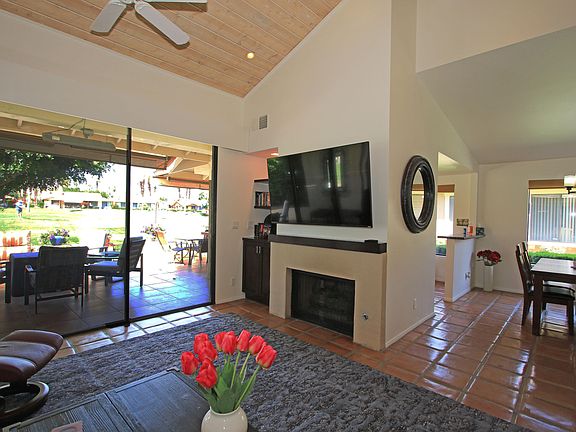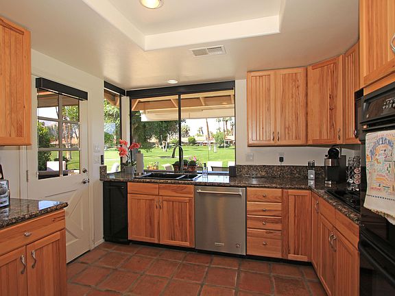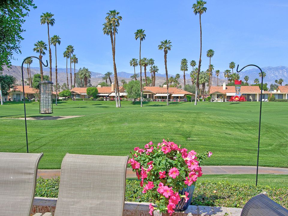 Here is your opportunity! Fantastic mountain and fairway VIEWS from the enclosed patio of this REMODELED, move in ready, 2bd + Den/2ba, 1656 sq/ft 30 Plan. Sits on an elevated lot, simultaneously affording privacy and a sense of openness. Designer finishes throughout. Beautiful kitchen remodel features custom cabinetry, granite counters, newer appliances, and gas cooktop. Wall removed, creating flow to dining and living areas. Atrium conversion is now part of a spacious Den. Wonderful cabinetry, tile, lighting & hardware in remodeled baths too. Power awnings on patio, large 2-car garage with additional storage. Just steps to a great community pool & spa. Great seasonal and long term rental possibilities too! Centrally located in the heart of Palm Desert, Monterey CC is one of the most active clubs in the desert. 27 holes of Ted Robinson designed golf, 15 tennis courts, pickleball, bocce, and 37 community pools for your enjoyment.