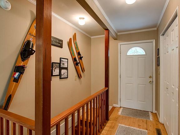 Charming house located within walking distance of Floating Mill Park (trails, swimming, boat ramp) and within minutes of Hurricane Marina. This lake house has great location and more! Level/spacious parking, attached garage and two covered decks. Gas fireplace, farmhouse sink, lots of windows, and a finished basement. Being offered furnished.