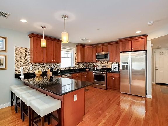 - Kit Dscrp: Flooring - Hardwood, Countertops - Stone/Granite/Solid, Breakfast Bar / Nook, Recessed Lighting, Dining Area, Stainless Steel Appliances, Cabinets - Upgraded, Kitchen Island, Countertops - Upgraded, Open Floor Plan, Balcony / Deck, Exterior Access