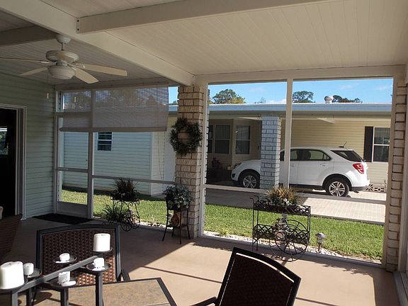 GORGEOUS 2002 HOMES OF MERIT IN THE BEAUTIFUL AGE RESTRICTED, GATED,GOLF COMMUNITY IN THE HAMPTONS . WHAT A HOME ! YOU HAVE TO SEE THIS ONE ! IT IS THE MOST BEAUTIFUL HOME IN THE HAMPTONS , BAR NONE . PET FREE, SMOKE FREE HOME . THIS HOME HAS GREAT CURB APPEAL ! WHEN YOU ENTER THROUGHT THE SCREENED IN CARPORT , YOU ARE ALMOST HOME . THE SCREENED IN CARPORT IS HARD TO FIND . YOU CAN HOST YOUR HOLIDAY PARTIES , GET TOGETHERS FOR THE FLORIDA GATOR GAMES OR JUST HANG OUT AND HAVE FUN WITH YOUR NEW FOUND FRIENDS . YOU CAN ENTER THE MAIN PART OF THE HOME OR COME RIGHT INTO THE VERY NICELY DONE HEATED AND COOLED LANAI THAT YOU CAN ENJOY YEAR ROUND . ENTERING THE LIVING ROOM WILL TAKE YOUR BREATH AWAY WITH THE BEAUTY OF THIS HOME WITH A REAL WOOD BURNING FIREPLACE AND 2 SKYLIGHTS THAT GIVE YOU GREAT LIGHT IN THIS LOVELY ROOM . YOUR NEW HOME HAS TAPE AND TEXTURED WALLS THROUGHOUT AS WELL AS NEW LAMINATE FLOORING , EVEN IN THE CLOSETS. THE LR FURNITURE STAYS WITH THE HOME( ONLY 6 YRS OLD ) . WOW ! THE HOME IS VERY TASTEFULLY DECORATED WITH QUALITY FURNISHINGS . THE LIVING ROOM LEADS YOU TO THE DINING ROOM AND THEN TO THE BEAUTIFULLY DONE KITCHEN WITH COPPER FIXTURES ! A NEW REFRIGERATOR IN 2015 . THE KITCHEN WAS REMODELED ONLY 7 YEARS AGO ALONG WITH THE COMPLETE REMODEL OF THE WHOLE HOUSE. THE KITCHEN NOOK TABLE STAYS WITH THE HOME . THE NICE SIZED LAUNDRY ROOM LEADS OFF OF THE KITCHEN AND HAS AN EXIT DOOR TO THE OUTSIDE. THE LIVING ROOM ALSO LEADS YOU TO THE HUGE MASTER BR AND BA WITH WHICH THE FURNITURE STAYS ALONG WITH THE SOFA TABLE IN THE MASTER BR.THE MASTER BATH HAS DOUBLE SINKS , A LARGE WALK IN CLOSET AND A DOUBLE SEATED SHOWER AND CERAMIC TILE ON THE FLOOR.YOU ALSO HAVE A LINEN CLOSET FOR YOUR TOWELS. LEAVING THE DINING AREA , YOU HAVE A HALLWAY THAT LEADS TO THE GUEST BEDROOMS AND GUEST BATH THAT ARE BEAUTIFULLY DONE AND BOTH HAVE WALK IN CLOSETS .THE GUEST BATH AND MASTER HAVE CERAMIC TILE FLOORS . THE FURNITURE IN BR 2 AND 3 DO NOT STAY WITH THE HOME . YOUR NEW HOME HAS A 12 X 23 HEATED AND COOLED FOR YOUR COMFORT TO BE ABLE TO USE THE LANAI ALL YEAR ROUND . THIS WOULD MAKE A GREAT MAN CAVE ! YOU COULD WATCH THE GOLFERS OR THE WILDLIFE, WITH NEW BLINDS ADDED IN 2016 FOR PRIVACY . THIS HOME HAS A GREAT STORAGE SHED THAT IS A 12 X 12 WITH A NEW GARAGE DOOR AND OPENER ADDED IN 2014 .THERE WAS EXHAUST FANS ADDED TO THE HOME WHEN THE ROOF WAS REPLACED AND ALSO THE TIE DOWNS FOR HURRICANES WERE INSPECTED AT THE SAME TIME . THERE WAS A MOISTURE BARRIER PUT UNDER THE HOME IN 2015 ! WOW , THIS HOME HAS HAD A COMPLETE MAKEOVER ! THE OWNERS ADDED SCREENS TO THE UNDERPINNING TO KEEP UNWANTED GUESTS FROM BENEATH THE HOME . YOU HONESTLY HAVE TO SEE THIS HOME TO APPRECIATE IT . IT IS RARE TO FIND ONE THAT YOU CAN JUST MOVE IN AND DO NOTHING ! WELL , THIS IS IT . CALL FOR AN APPOINTMENT TO SEE THIS ONE !
