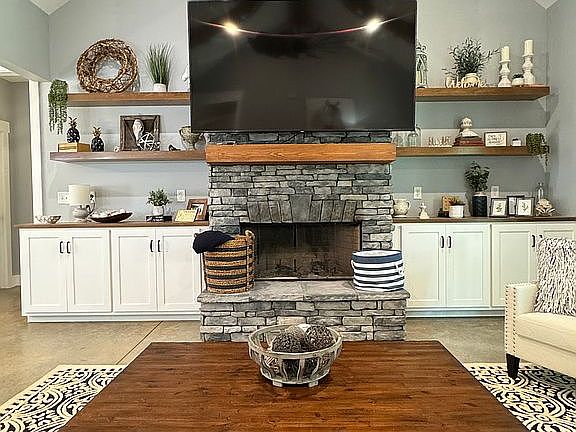 The home boasts a spacious 919 square-foot three-car garage, providing ample space for vehicles and storage. The expansive back patio, complete with a cozy fireplace and TV, is perfect for hosting backyard parties and gatherings, ensuring memorable moments with family and friends.